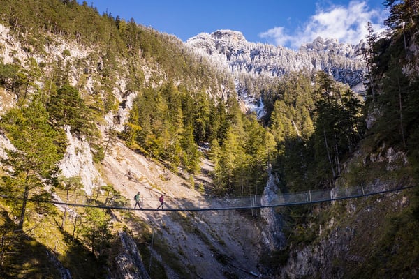 Umrahmt von Soiern-, Karwendel-, Wettersteingebirge entdecken Sie rund um unser Gästehaus Haller einmalige Naturschauplätze wie die Buckelwiesen und die rauschende Hüttlebachklamm.